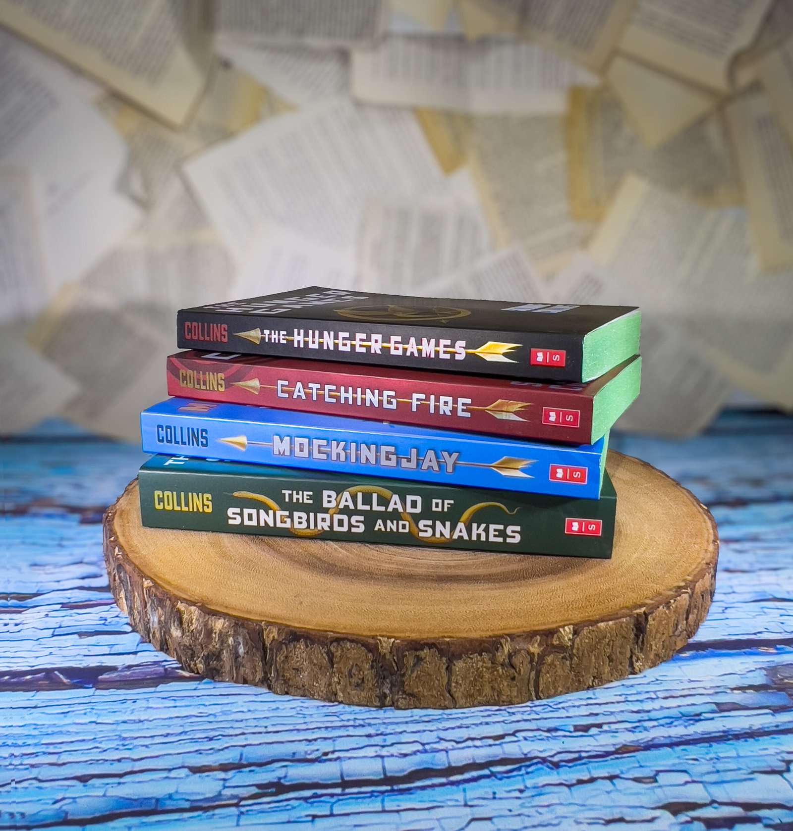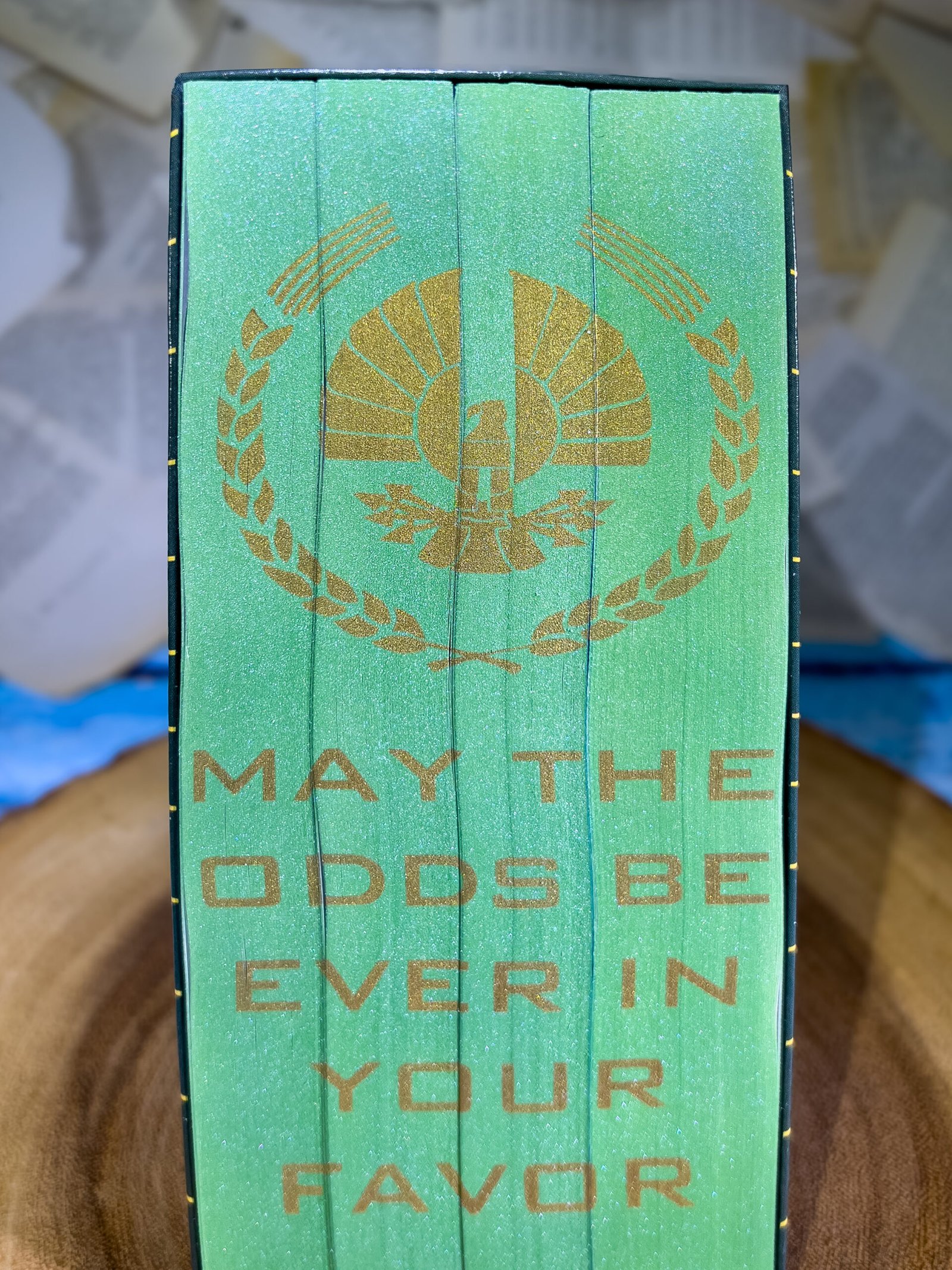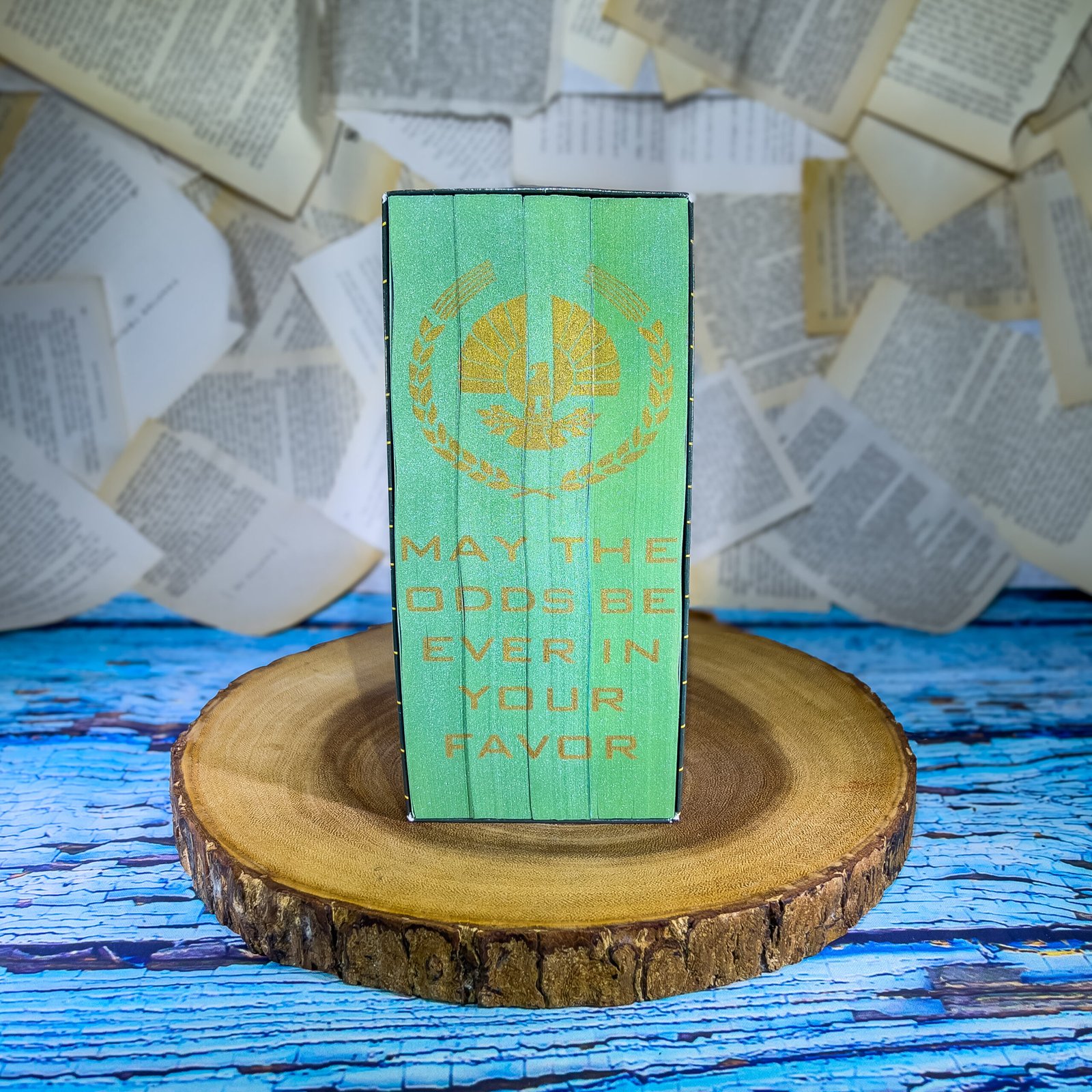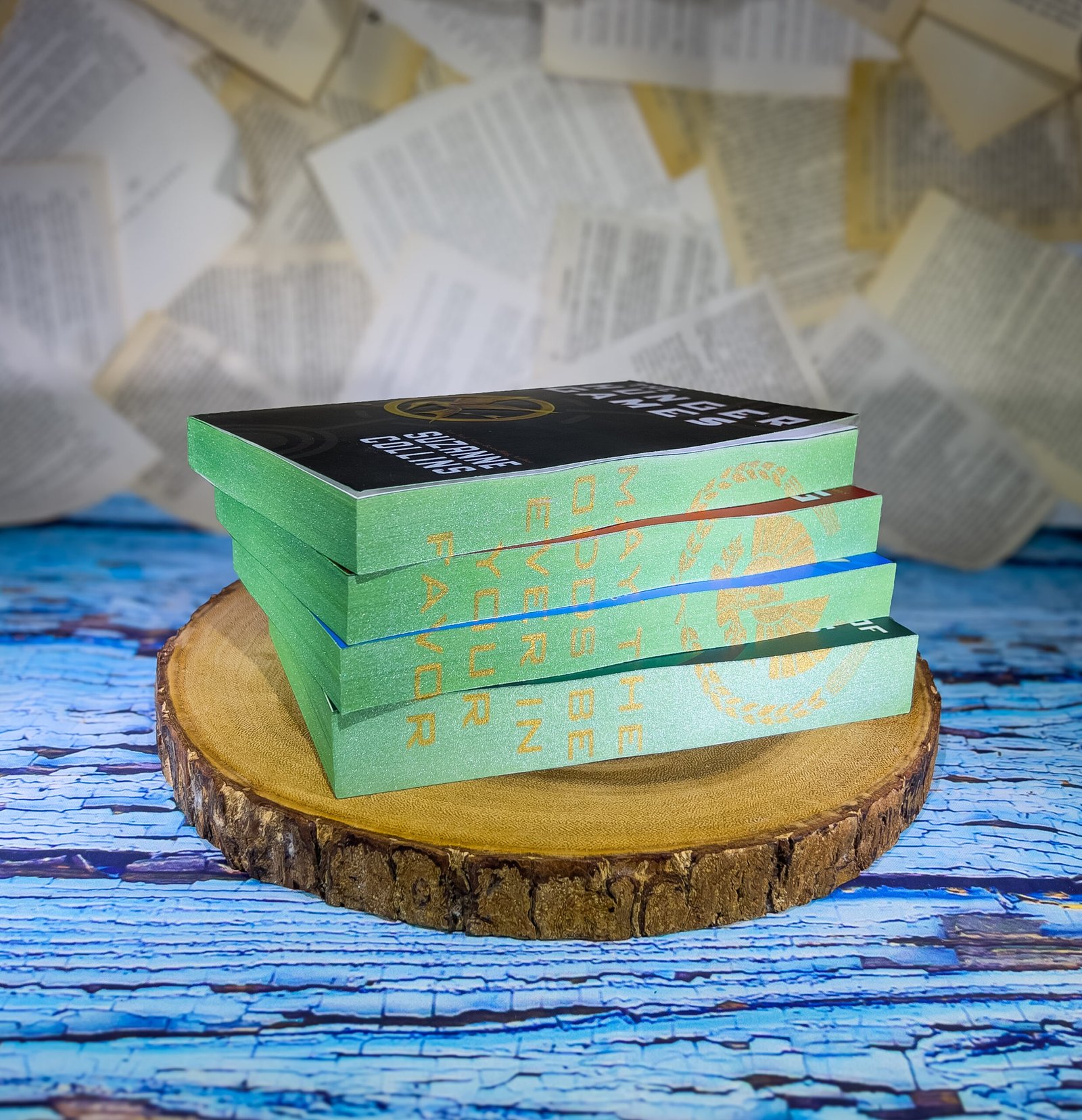 This listing is for custom sprayed & stenciled edges of the Hunger Games Series books by Suzanne Collins which includes the books The Hunger Games, Catching Fire, Mockingjay, and The Ballad of Songbirds and Snakes. I do not own the content of these books, I just spray the edges.